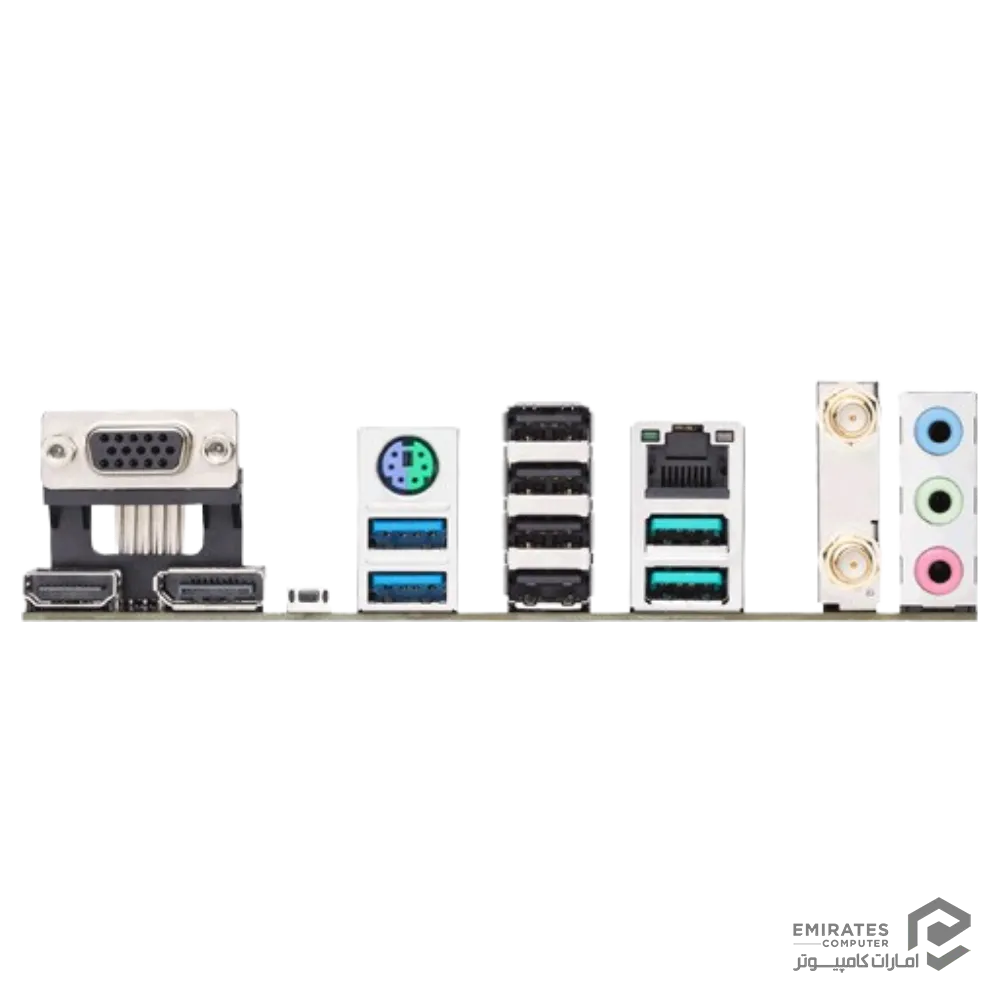 از نظر پورتها نیز کاملاً مجهز است: USB-C، پورتهای USB نسل 3.2، HDMI و DisplayPort برای ساخت سیستمهایی که از گرافیک داخلی پردازنده استفاده میکنند، و هدرهای متعدد برای فن و RGB که برای کیسهای گیمینگ نورپردازیشده گزینهای ایدهآل ایجاد میکند.